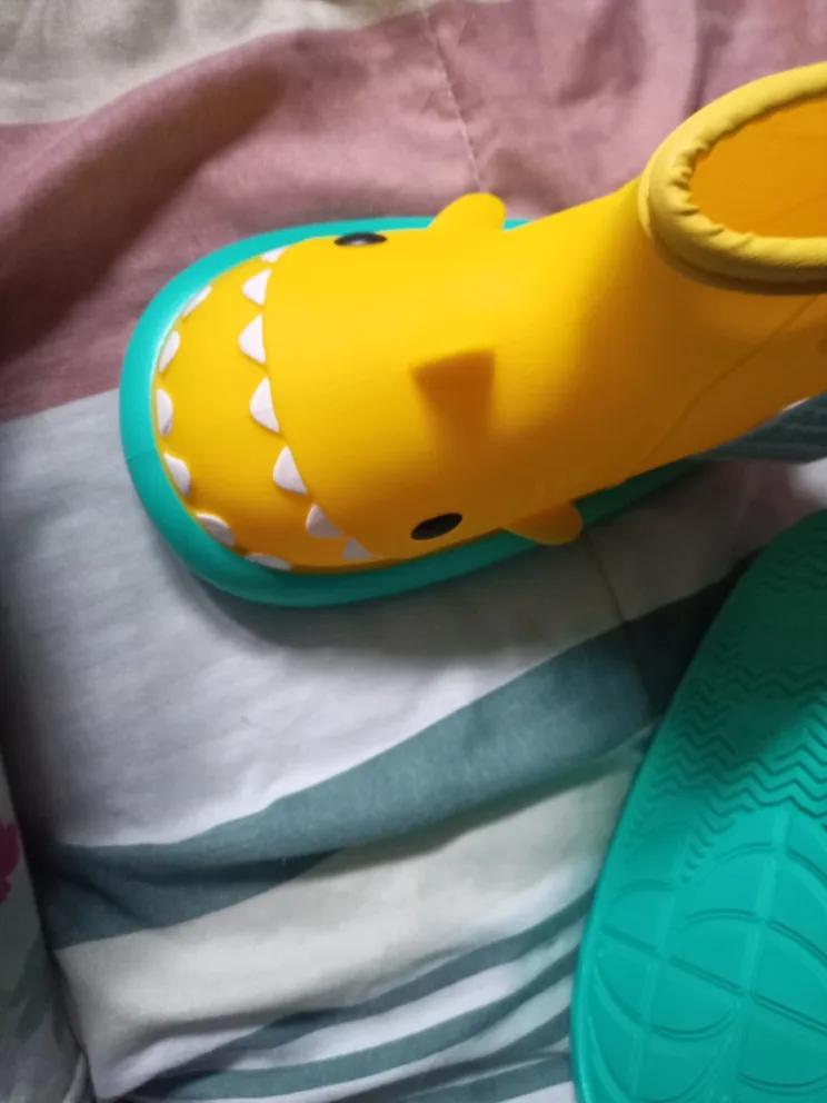 Nuestras Shark Boots™ no solo mantendrán los pies de tus hijos secos en los días lluviosos, sino que también están diseñados con una suela antideslizante para proporcionar una tracción sólida en superficies resbaladizas. ¡Nada detendrá a tu pequeño tiburón en sus emocionantes aventuras bajo la lluvia!